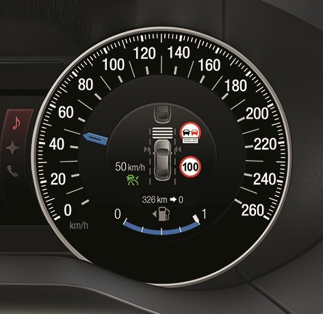 Intelligent Speed Limiter also communicates with the onboard navigation system to help accurately maintain the appropriate maximum speed when distances between speed limit signs are greater, for example on long country roads. Drivers can temporarily override the system by firmly depressing the accelerator pedal.