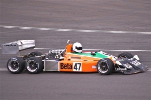 The wacky six wheeler was build in Bicester in 1976 and tested out the following year. Due to cash problems it was never entered in a competitive race. It became obvious very quickly during its first spell of testing at Silverstone that extra time and money were needed to solve some basic problems with the gearbox.