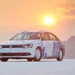 A fallacy, as VW has now shown. The VW Jetta Hybrid, seemingly fitted with a stock 150 horsepower 1.4 TSI and a 27 hp electro-engine, as well as a seven-speed DSG automatic, stopped accelerating at just under 186 mph. They must have made some changes to the seventh speed and have also made some aerodynamic improvements, but even then that’s one seriously fast Jetta! Really, in theory that little hybrid should be able to keep up with most seriously quick Bimmers, Mercs and Audis on a clear German Autobahn.
