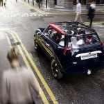 The Rocketman is a three-door hatchback, not much smaller than the original Mini produced from 1959. It has a couple of slick features, like a Union Jack etched in the glass panoramic roof and kick-ass cantilevered doors. Mini stated the concept had a carbon space frame construction, which means as much as that the metal in a normal car’s chassis is replaced by carbon fibre composite material. Nothing that hasn’t been done before, but quite kinky for a small car like that and very helpful towards keeping its mass down. As a result it was said the concept would drink only one imperial gallon every 94 miles. That’s better than a Polo Bluemotion coffee grinder!
