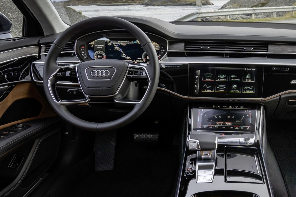 The specification for the new Audi A8 line-up includes an eight-speed automatic transmission fitted as standard, comfort contour seats and a 12.3-inch HD virtual cockpit.