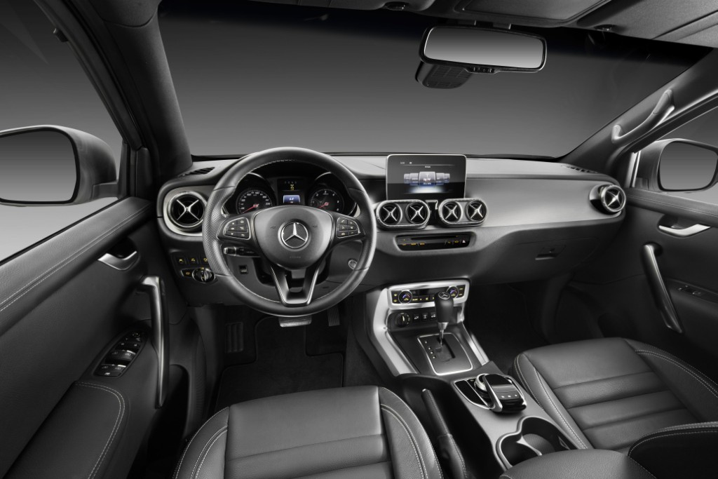 The model coming to the UK features a double cab and the firm’s selectable 4Matic all-wheel drive system. There’s also a drive selection mode to suit the circumstances.